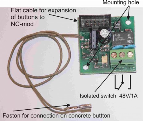 This expansion module provides additional control equipment selected by pressing a button NUDV. Power module ensures flat wire connections, which connect the NC-mode, the condition is to have the motherboard power supply 12V. This cable is modified so that it is longer and has 3 crimping of the same design is to connect an external speaker, or IP cameras.